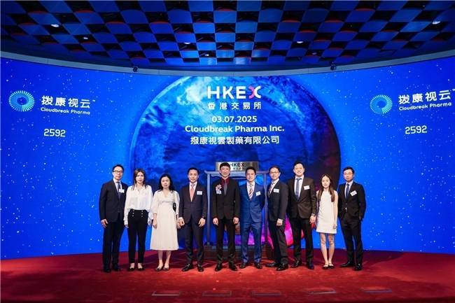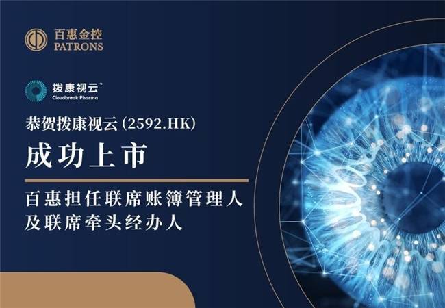 2025 年7月3日上午股票配资社区,Cloudbreak Pharma rInc.(下称“拨康视云”),股票代码2592.HK,正式登陆香港联交所主板,每股定价为10.10港元,录得近78倍超额认购,百惠金控团队担任联席账簿管理人及联席牵头经办人。